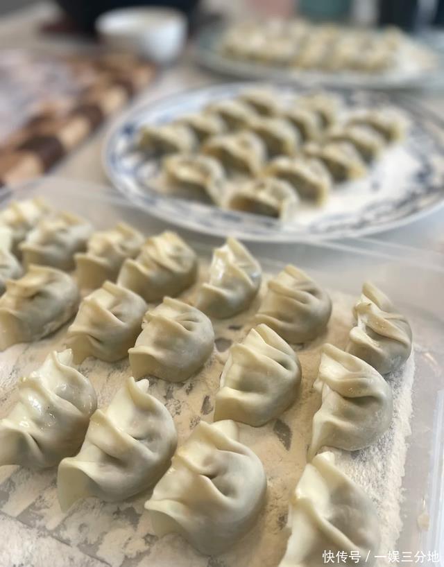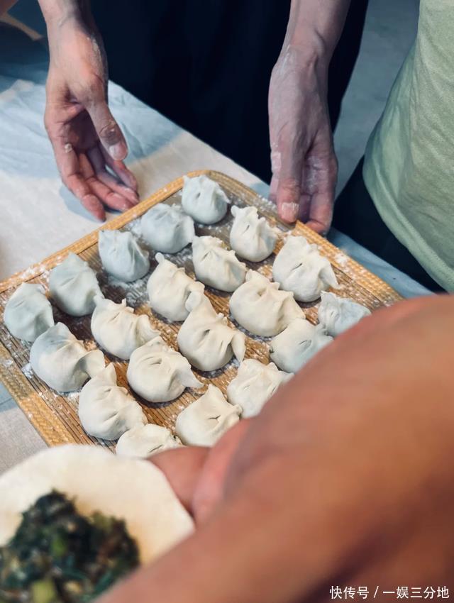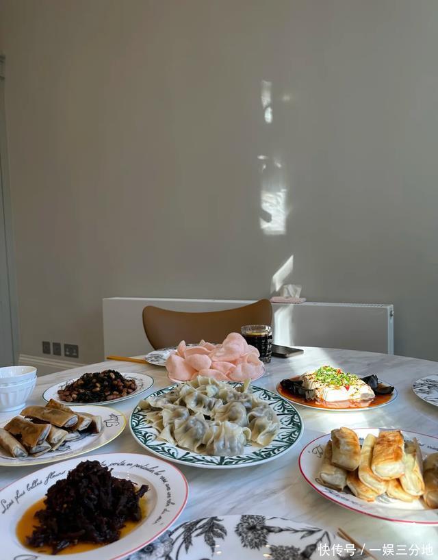 但真正让人目瞪口呆的,是她家的厨房—— 宽敞明亮到能反光,墙面干净得像刚消毒完,连橱柜都整整齐齐像展示柜。 细节拉满:擀面杖上还有点挂面粉,围裙上也沾着点面渣,桌上摞着一摞薄如蝉翼的饺子皮。那手法,一看就是“老江湖”。 朋友们都围坐在餐桌边,一边包饺子一边聊天。