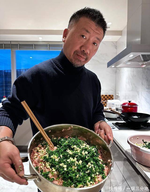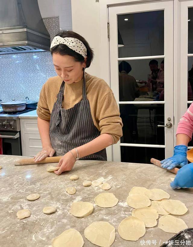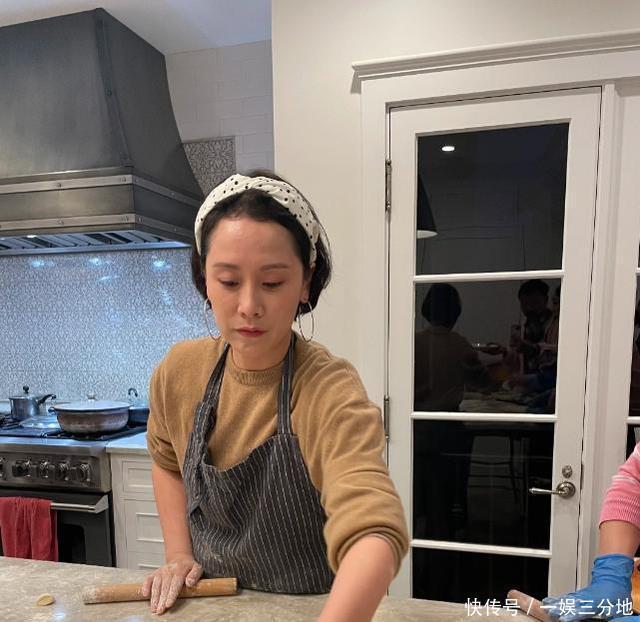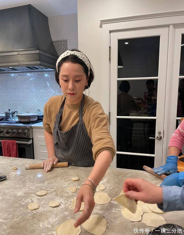 47岁海清素颜包饺子火了!豪宅厨房曝光,戴围裙熟练擀饺皮